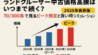 トヨタ ランドクルーザー中古価格高騰はいつまで続く?70/300系で見るピーク推定と買い時シミュレーション ランドクルーザー中古価格高騰はいつまで続くのか?70系・300系の最新相場データを徹底分析し、2025年のピーク予測を提示。新車価格とのギャップ、買い時・売り時シミュレーション、具体的な掲載事例まで網羅。後悔しないランクル選びのための必読ガイド。 2025.09.22 トヨタ
