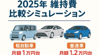 サブスク車 【2025年版】軽自動車 vs 普通車 維持費比較シミュレーション|年間・月額・10年単位で差が見える本当の数字 2025年最新版の維持費シミュレーション。軽自動車・普通車・プリウスを比較し、年間・月額・10年のコスト差を徹底解説。税金・燃料費・保険の最新制度も反映し、「本当に安い一台」が分かります。 2025.09.26 サブスク車