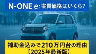 ホンダ N-ONE e: の実質価格はいくら?補助金込みで210万円台になる理由と注意点(2025最新版) ホンダ新型N-ONE e:の価格は269.9万円〜。CEV補助金57.4万円適用で実質210万円台に!航続距離295km、急速充電30分80%、給電機能も搭載。サクラとの比較や購入前の注意点を、試乗体験を交えて徹底解説します。 2025.09.25 ホンダ