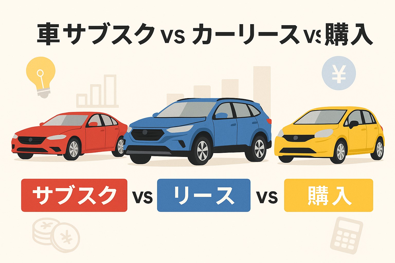 2025年最新版:車サブスク vs カーリース vs 購入―あなたに本当に得な選び方+総支払額シミュレーション