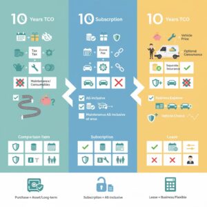 この記事では、トヨタKINTOをはじめとする最新の車サブスク公式データ、リース契約の仕組み、そして購入時の10年総額(TCO)をすべて並べて比較します。