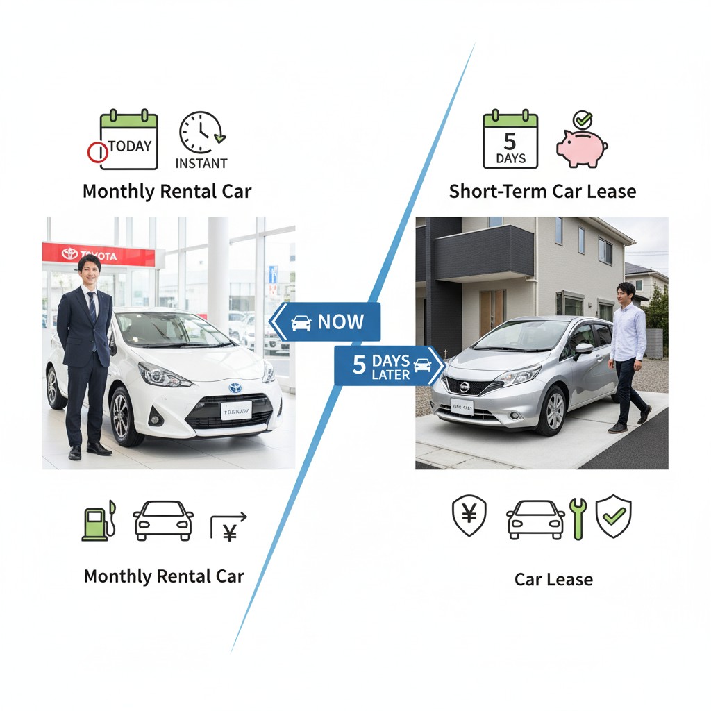 • 🚗 当日はレンタカー、最短5日は短期カーリース