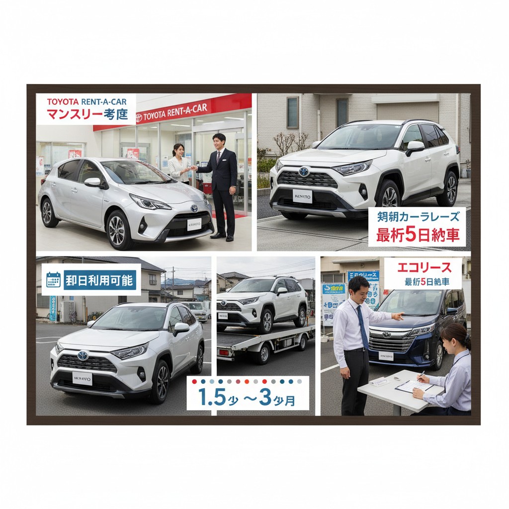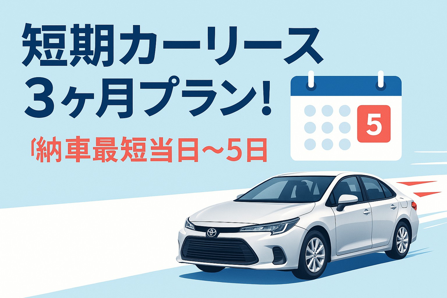 • トヨタレンタカー(マンスリー制度):即日〜当日利用可、3ヶ月でも柔軟に対応