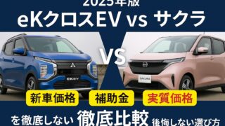 車比較 「2025年版:eKクロスEV vs サクラ 新車価格・補助金・実質価格を徹底比較|後悔しない選び方 軽EVの本命「日産サクラ」と「三菱eKクロスEV」を最新2025年版で徹底比較。価格・補助金・実質コスト・航続距離を体験目線で解説。失敗しない選び方がわかります。 2025.09.23 車比較